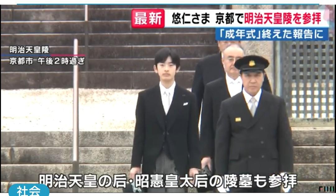 【速報】悠仁さま京都を私的にご訪問 モーニング姿で明治天皇陵参拝、成年式終了を報告 大学の春休みでhttps://www.fnn.jp/articles/-/1007413