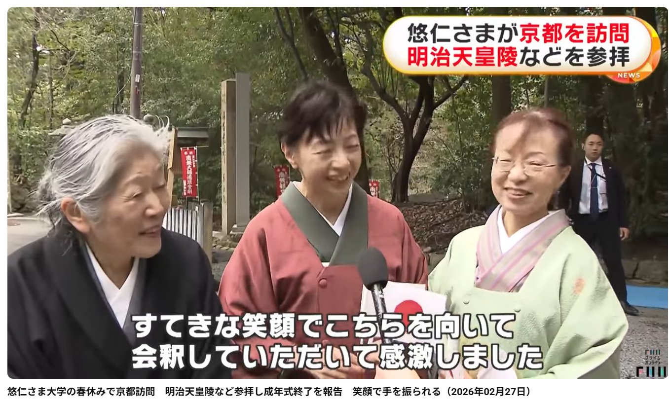 【悠仁さま】京都の能装束製造業者を視察成年式で装束を着たことで織元に関心をhttps://x.com/tv_asahi_news/status/2027350938168782887