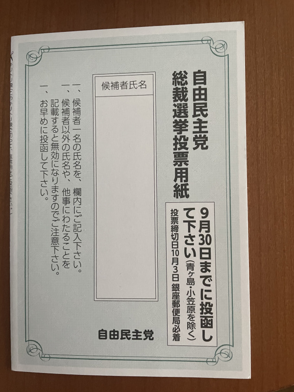 自民党国会議員の方、他陣営でも日本を大事に思うなら高市氏に入れるべきです。貴方たちは生い先が短いからいいと思ってるかも知れないが、貴方たちの子や孫は貴方たちが死んだ後もこの日本で生きて行かなければならないのです。愛国心もない売国奴で無策無能犯罪沙汰を冒してでも総理になりたい、そんな人物がこの日本を守れるわけがないのです。このままでは日本の将来は危ういです。投票する人は貴重な一票を意にそぐわない人物に入れる前に今一つ考えて見てください。愛する子や孫の将来のためにも。